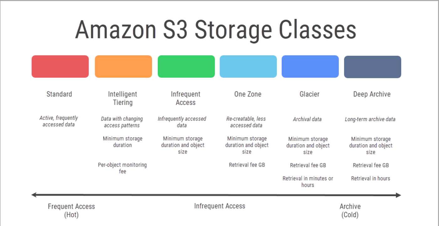 - S3 Storage Classes: https://aws.amazon.com/s3/storage-classes/