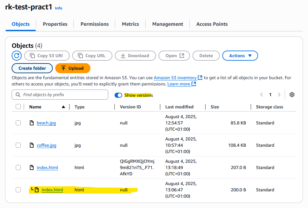 - Any file that is not versioned prior to enabling versioning will have version “null”
