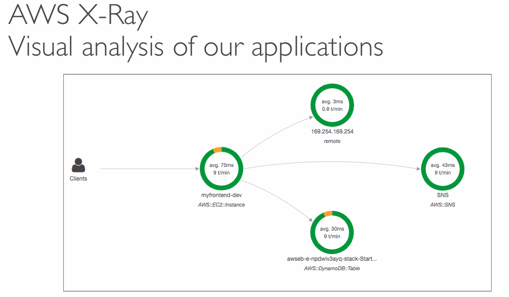 - X-Ray - trace requests made through your distributed applications (analyze flow)