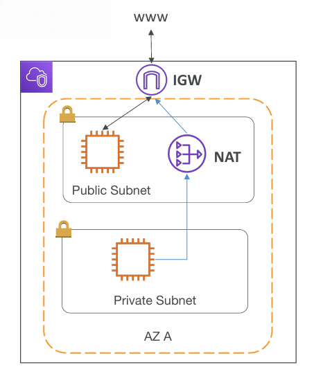 # For Private Subnet we don't associate it with any Internet Gateway. Traffic OUT goes via the NAT Gateway.