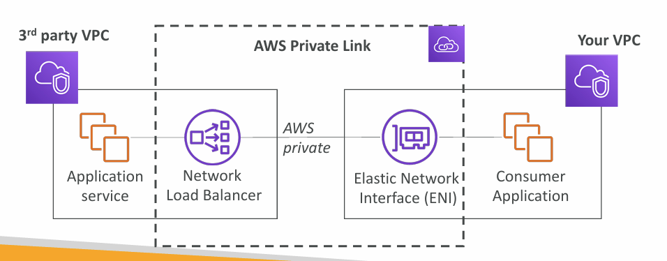 - Private Link: Privately connect to a service in a 3rd party VPC