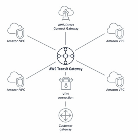 Transit Gateway is used for having transitive peering between thousands of VPC and on-premises, hub-and-spoke (star) connection. #