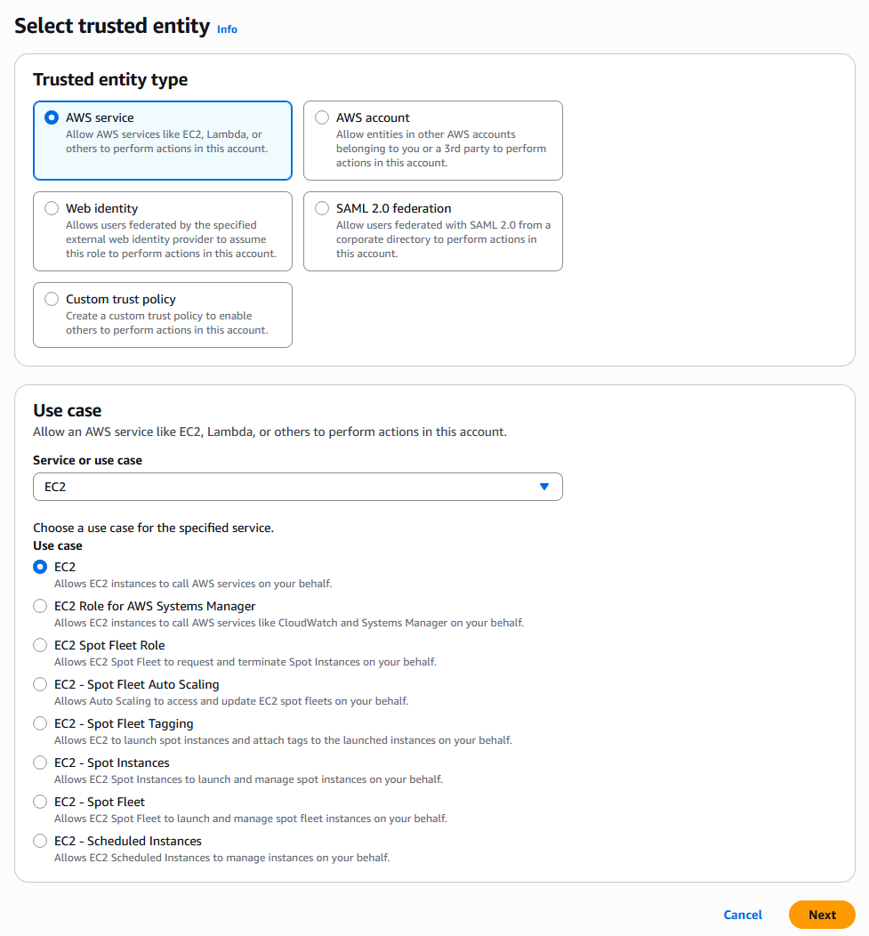 - Those AWS services will need permissions to be assigned with IAM Roles