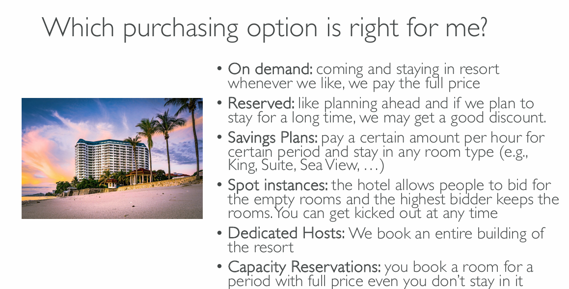 - Commit to a certain type of usage ($10/hour for 1 or 3 years)