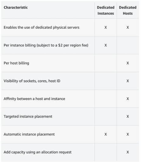 Dedicated Host vs Dedicated Instance: https://docs.aws.amazon.com/AWSEC2/latest/UserGuide/dedicated-instance.html