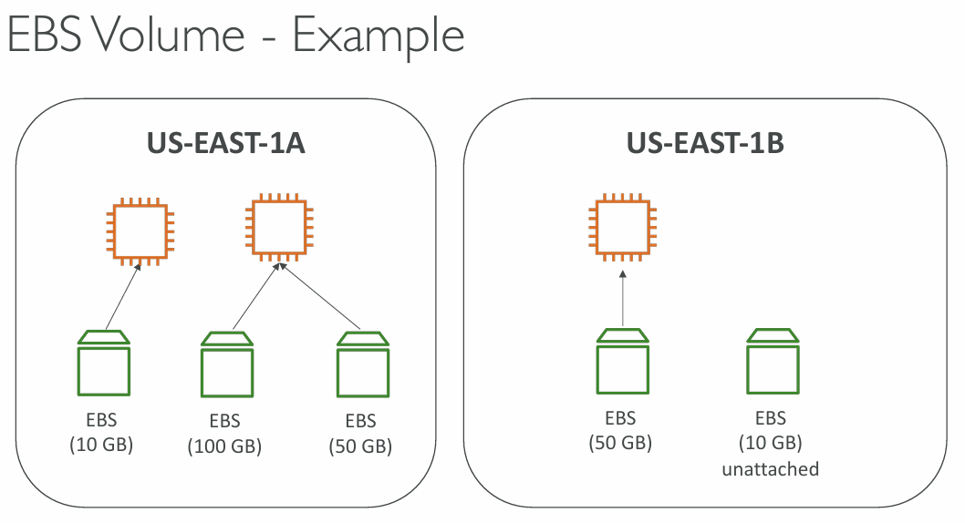 - an EBS Volume that is us-east-1a can’t be attached to us-east-1b
