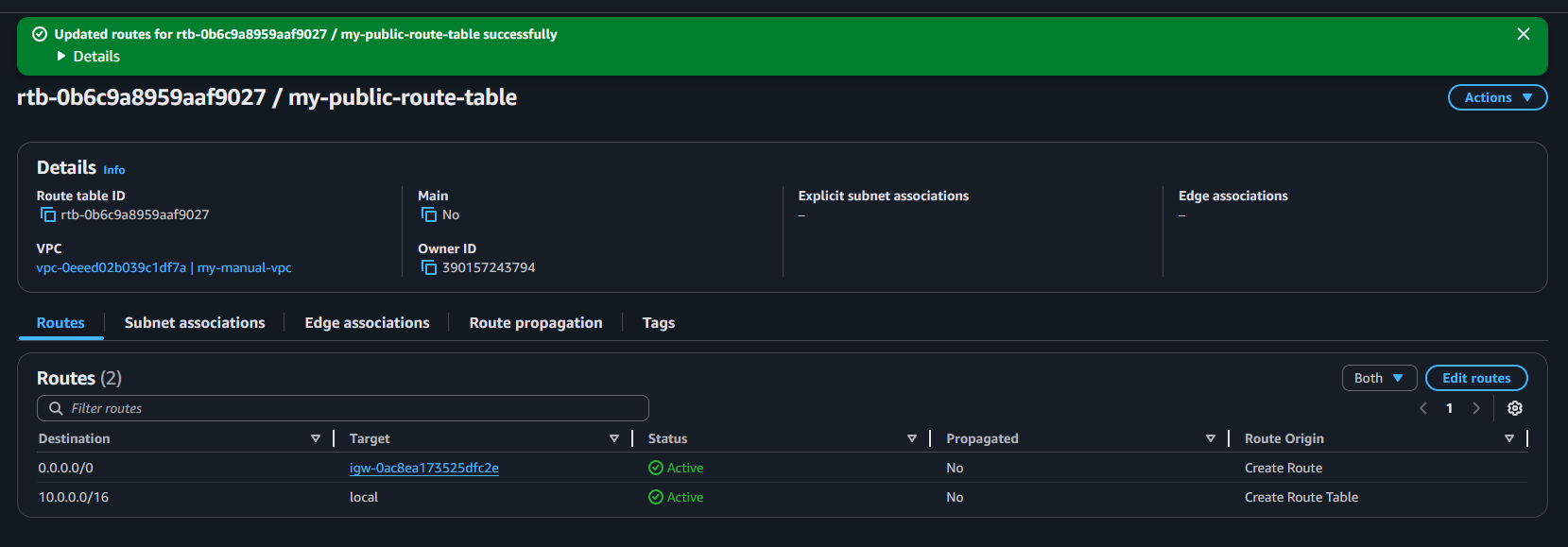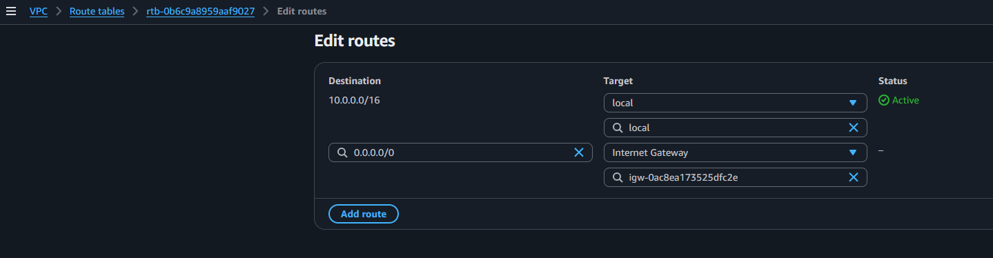 IAM console > VPC > Route tables > my-public-route-table > Routes